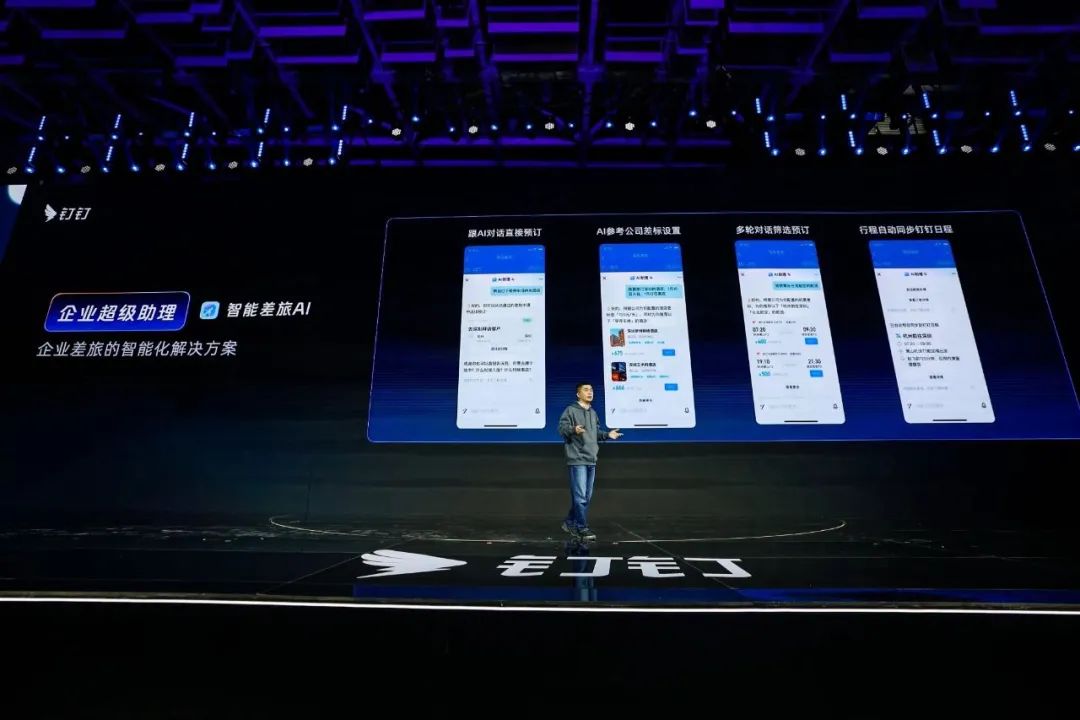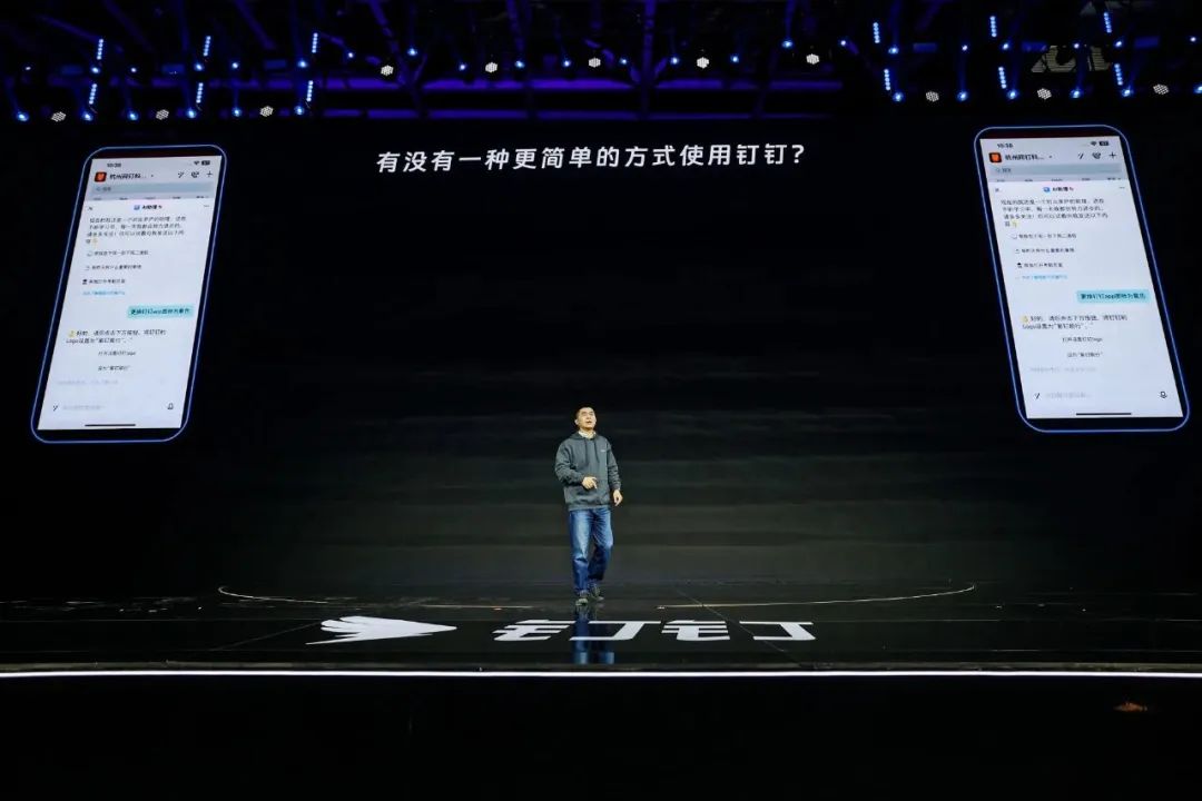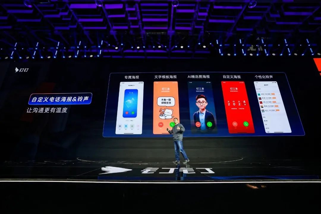 在现场的演示中,叶军通过自然语言与 AI 助理对话,把那些藏在深处的功能菜单用最快的方式找了出来,例如更换钉钉图标、直接签到、换钉钉来电铃声等操作,都只用 2 个步骤,就完成了修改。