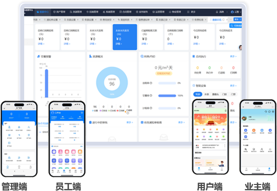 磐固星汉智慧平台整合了资产管理、空间管理、招商管理、合同管理、财务管理、运营管理、物业管理、行政办公、智慧物联和数据中心等核心模块。各模块协同运作,为智慧园区的高效、智能、可持续发展奠定坚实基础,全面提升园区管理水平与综合竞争力。